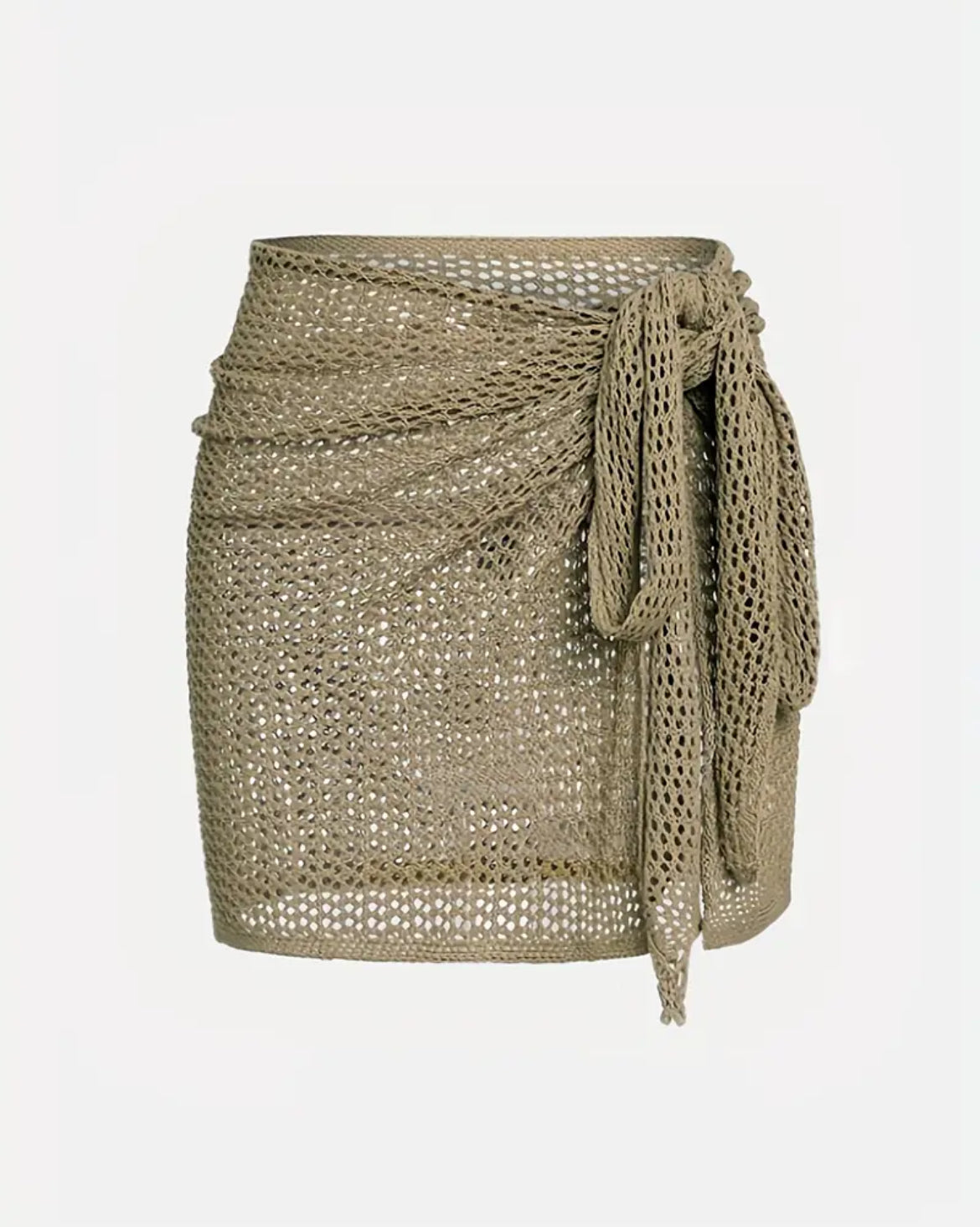 Solid Khaki tie front knitted cover up skirt perfect for vacation or A beach/pool day.